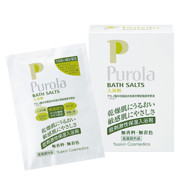 ◆医薬部外品◆ お風呂のお湯の残留塩素を除去し、カサカサ肌をしっとりうるおす薬用入浴剤 ◇成分表◇ 有効成分:乾燥硫酸ナトリウム(温泉ミネラル成分※)、炭酸水素ナトリウム(温泉ミネラル成分※)※温泉そのものではありません。 その他の成分:乾燥硫酸ナトリウム、トウキエキス(1)、センキュウエキス、シソエキス(1)、タイムエキス(1)、ニンジンエキス、ダイズエキス、ノバラエキス、ヒアルロン酸ナトリウム(2) タウリン、グリシン、銅クロロフィリンナトリウム、リボフラビン、1,3-ブチレングリコール 無水ケイ酸、無水エタノール、エタノール、ヤシ油脂肪酸アミドプロピルベタイン液、精製水