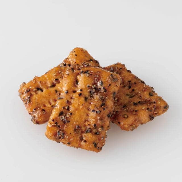 ◇原材料 小麦粉(国産製造)、植物油脂、砂糖、水飴、米粉、黒ごま、黒胡椒、醤油(大豆を含む)、酵母、食塩
